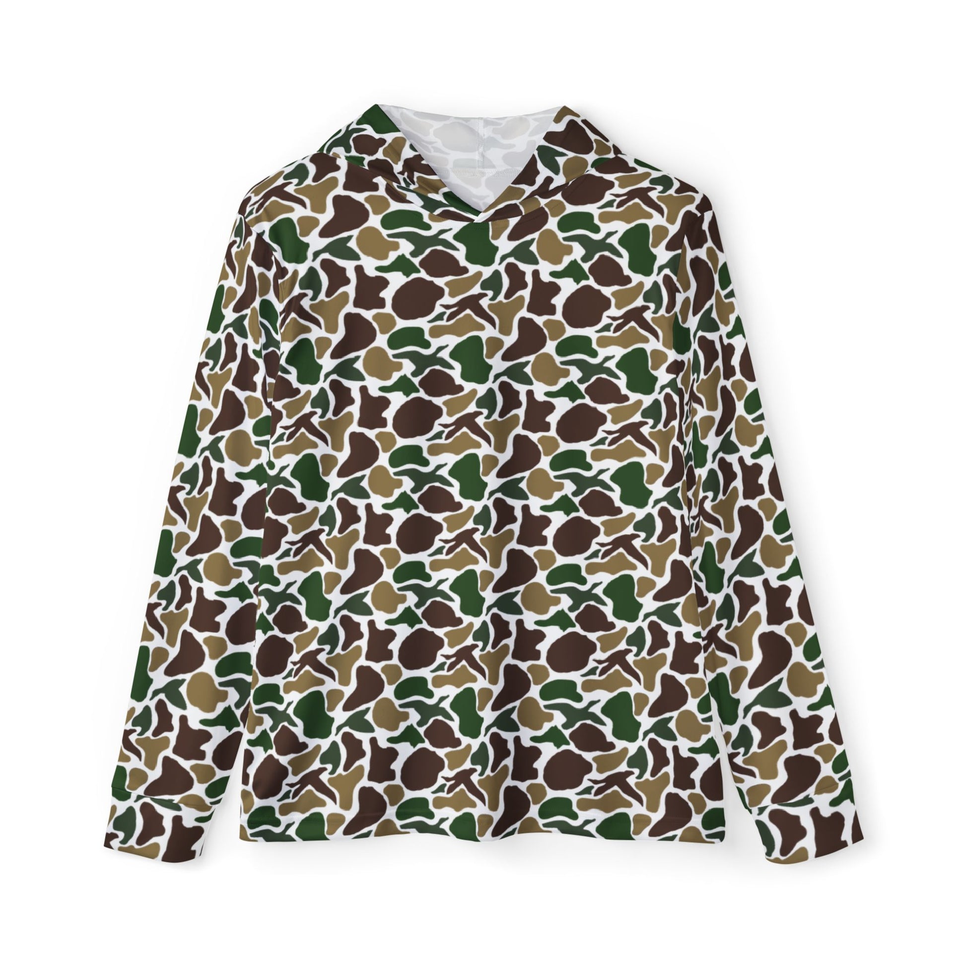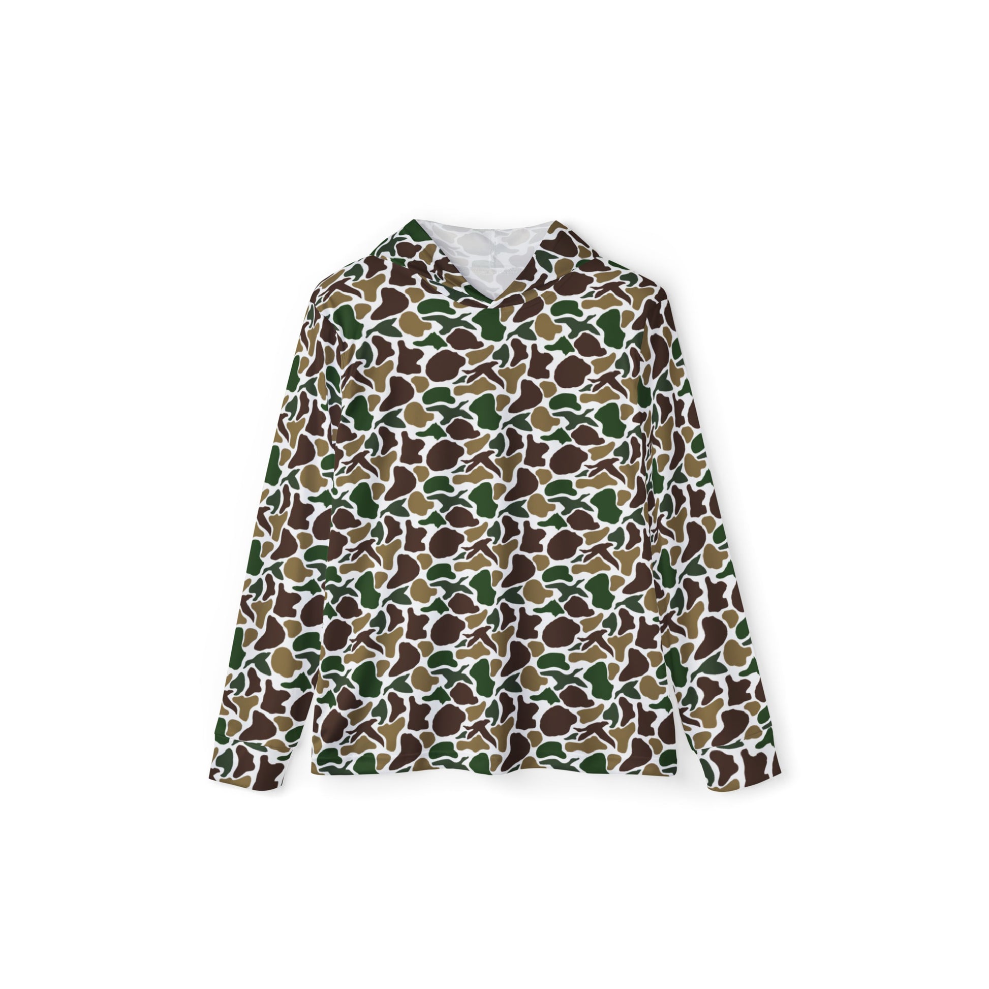 Featuring a sleek duck camo print, this hoodie is ideal for hunting, fishing, kayaking, boating, or outdoor workouts. Its soft, extra-light fabric moves with you, while the blank white hood lining adds a clean, modern touch. The hoodie includes a printed care and size label inside the front hood seam for added comfort without irritation.